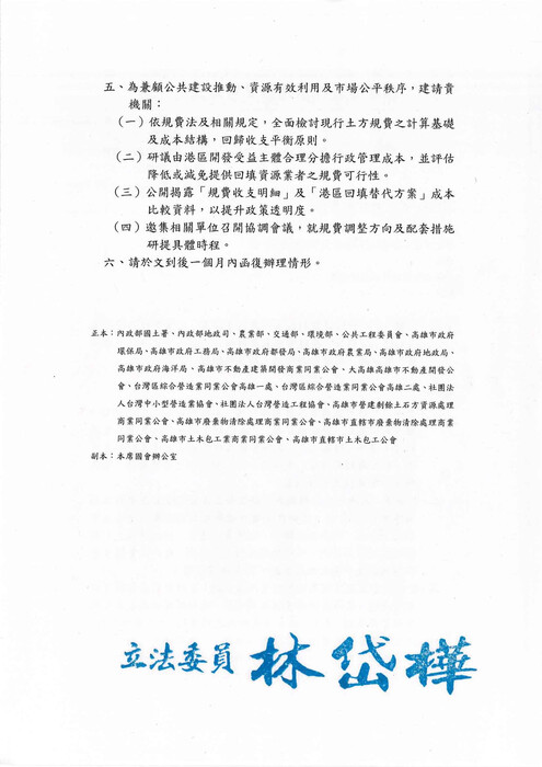 樺立字1150020120001號-有關高雄港區建築剩餘土石方回填政策之規費收取標準及成本結構合理.pdf